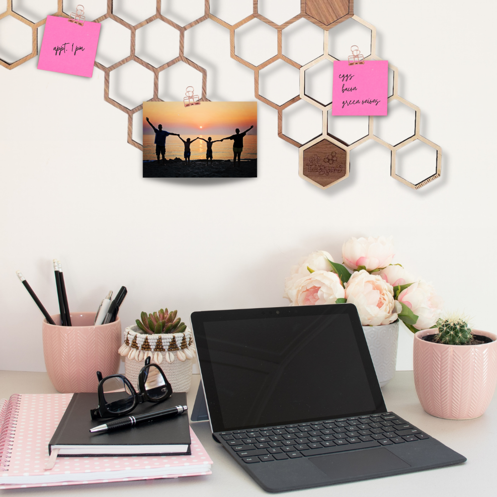 Keep clutter off your workspace and your important notes, cards, and to-dos visible. Move and rearrange the hexagons to fit your changing needs. The Honeywall transforms your desk from chaotic to chic in seconds.
