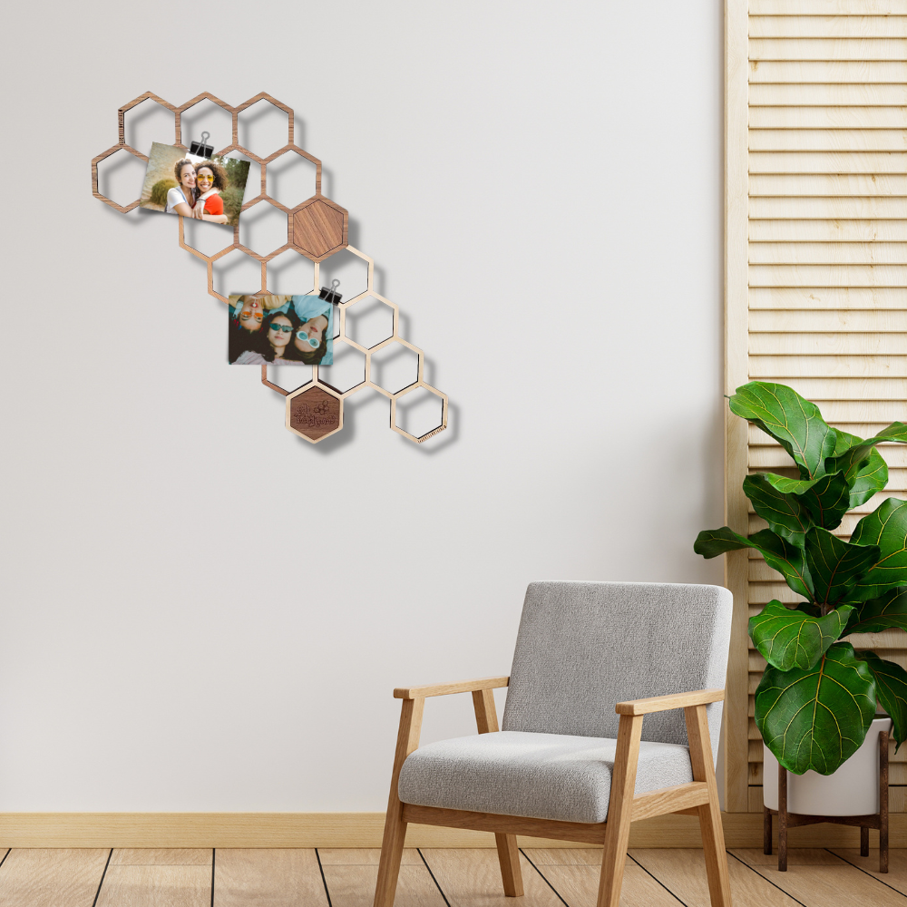 Think of the Honeywall as a floating bulletin board upgrade. Drape necklaces, clip earrings, hang rings, or showcase small art pieces. The hexagonal layout keeps everything organized while looking elegant and fun—far from a boring old cork board! Arrange your treasures in patterns or randomly, and let your creativity shine.