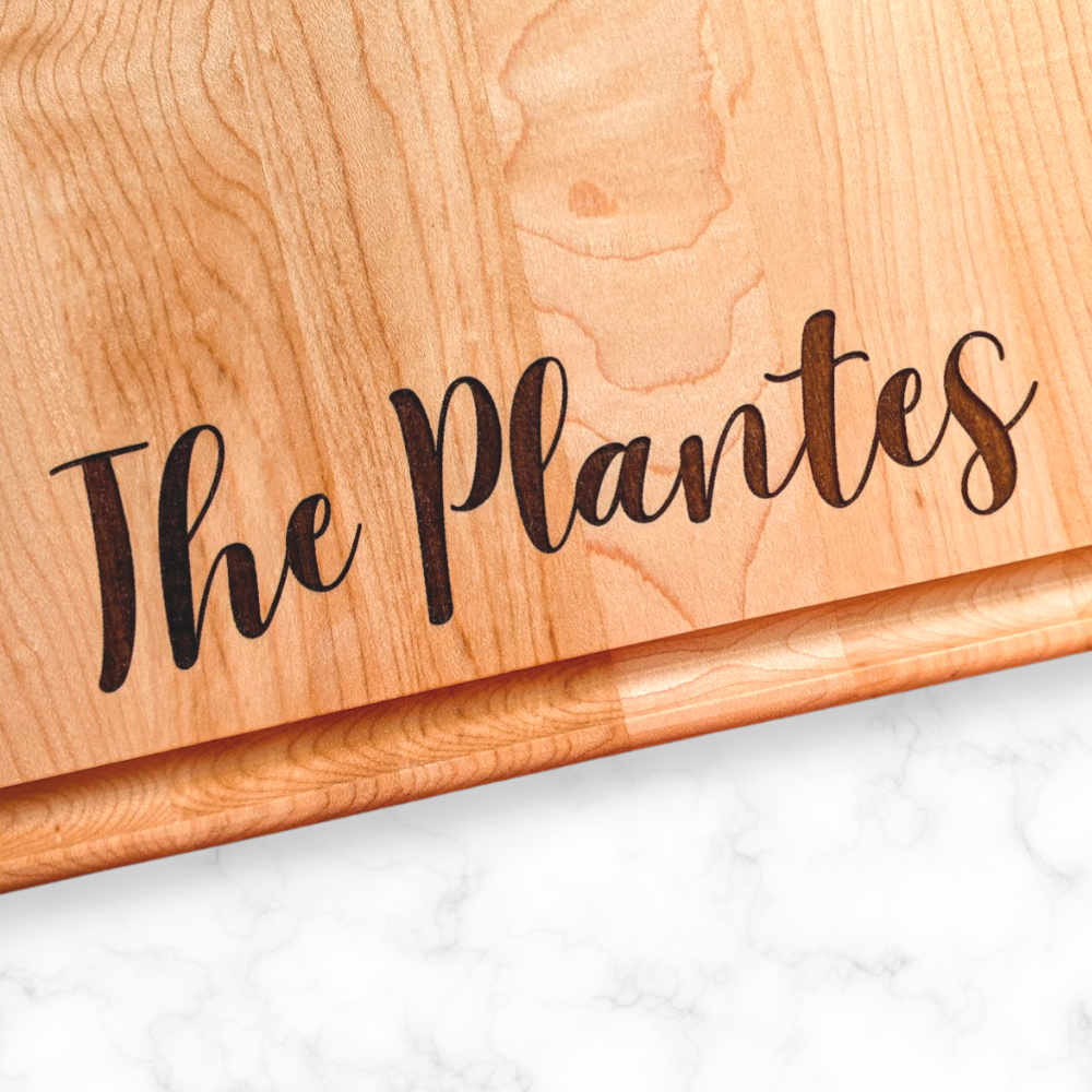 Proudly crafted in the USA with high-quality maple, these boards feature a smooth surface that lets your engraving pop. Rubber feet keep the board stable during use, and our careful finishing ensures it’s built to last through countless meals and memories.